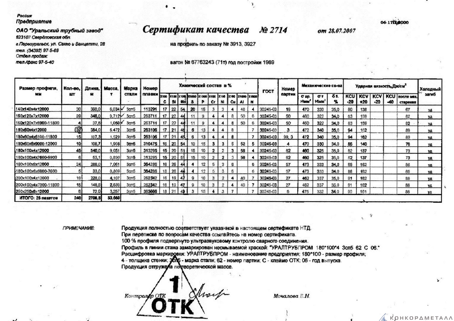 С каждой товарной позицией мы предоставляем все сертификаты и паспорта качества, а также товарно-транспортную накладную.